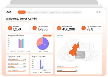 Track participation by geography, gender, and cohorts. Monitor progress, completion, and assessments in real time.